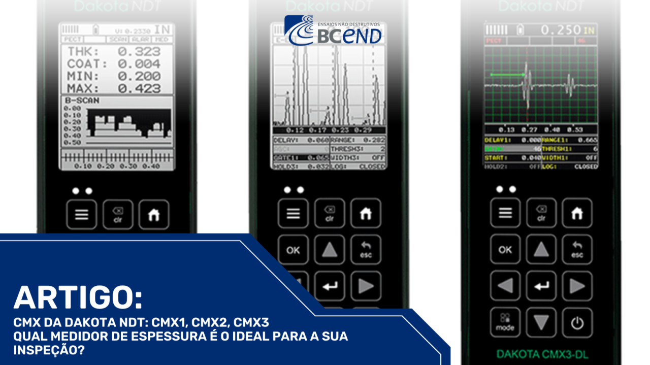 Na inspeção de Ensaios Não Destrutivos (END), a medição de espessura é crucial, especialmente em ambientes corrosivos. A linha CMX da Dakota NDT é referência nesse segmento, mas escolher entre os modelos CMX1-DL, CMX2-DL e CMX3-DL pode gerar dúvidas. A verdade é que cada um desses medidores foi projetado para um nível de inspeção diferente. Vamos descomplicar as funcionalidades e mostrar qual modelo se encaixa melhor na sua aplicação!