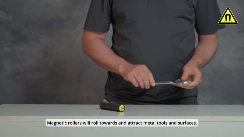 Dica prática: Se uma chave de boca é atraída pelos roletes magnéticos do WP2, o material é adequado para a inspeção.
