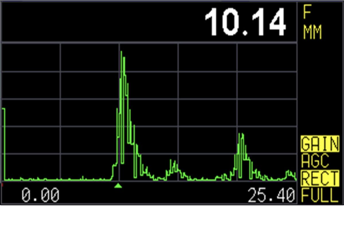 Exibição de forma de onda ao vivo (A-Scan) para verificação de ecos